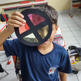 Para identificar objetos por meio de um corpo translúcido, criamos um vitral, onde foram realizadas brincadeiras.